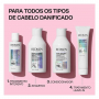 - Reconstrói e fortalece as ligações fragilizadas da fibra capilar