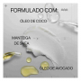 - Óleos de abacate, coco e manteiga de karité para hidratação e nutrição intensas