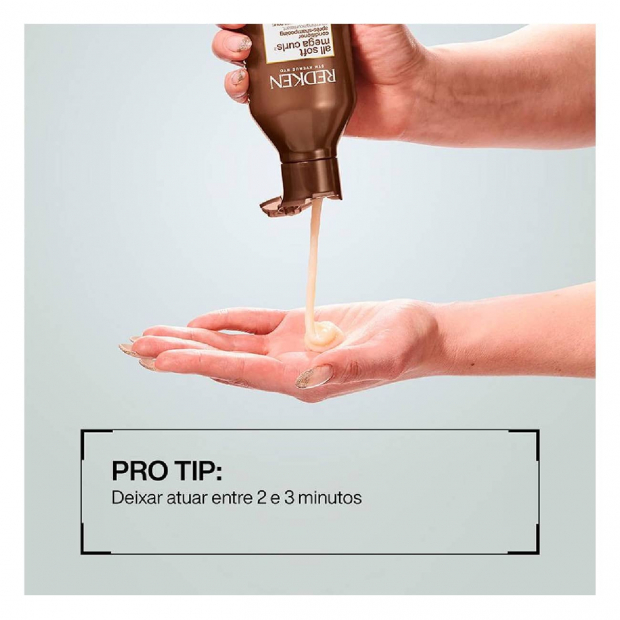 Aplica Redken All Soft Mega Curls Condicionador no cabelo húmido, depois do shampoo, deixa atuar e remove com água. Para melhores resultados, utiliza em conjunto com os restantes produtos da gama Redken All Soft Mega Curls.