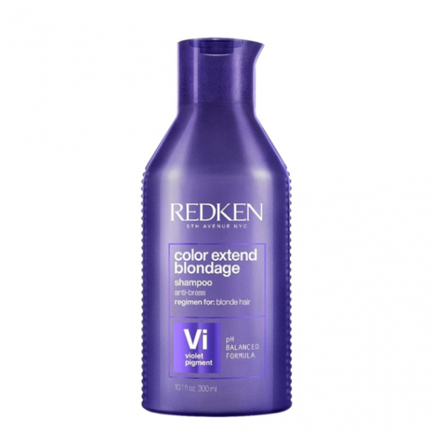 Redken Color Extend Blondage Shampoo tem uma fórmula de correção de cores infundida com pigmentos violeta e o inovador Complexo de Proteína Ácida Tripla, para uma ação de limpeza neutralizante, nutritiva, fortificante e revitalizante.