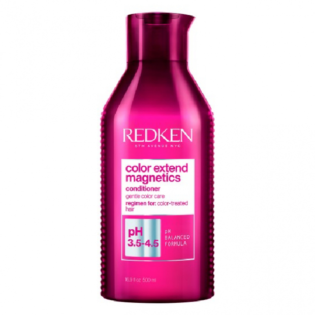 Redken Color Extend Magnetics Condicionador tem uma textura em creme fundente, com as tecnologias IPN, RCT, proteína de soja, arginina, composto de proteínas e aminoácidos, para uma ação protetora, reparadora, fortificante, suavizante e desembaraçante.