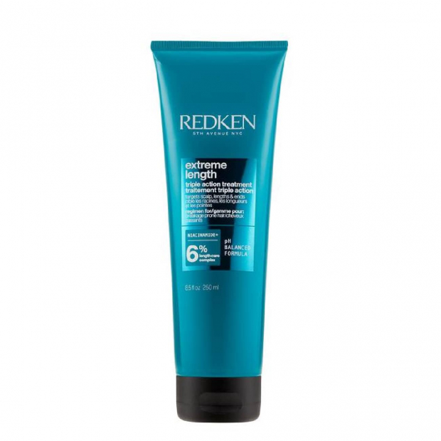 Aplica Redken Extreme Length Triple Action Tratamento em todo o escalpe e cabelo depois do shampoo, deixa atuar durante 3 a 5 minutos e remove com água. Para melhores resultados, utiliza em conjunto com os restantes produtos da gama Redken Extreme Length.