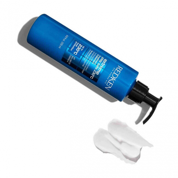 Aplica uma pequena quantidade de Redken Extreme Play Safe 230ºc Protetor Térmico no cabelo húmido, focando nos comprimentos e pontas. Deixa atuar sem enxaguar. Seca e modela como pretendido.