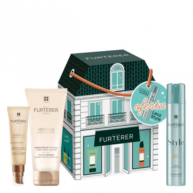 Num coffret que associa um shampoo e um sérum reparador, que ajudam a reconstruir a fibra e a fortalecer profundamente o cabelo. Para além dos dois cuidados reparadores, contém ainda uma laca vegetal de fixação forte, natural e de longa duração, define e fixa o penteado.