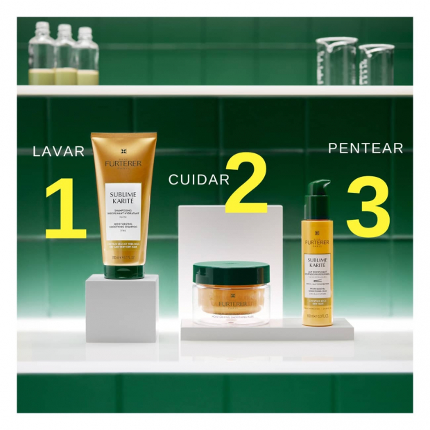 - Rene Furterer Sublime Karité Máscara Hidratação e Disciplina é uma máscara hidrata intensamente e disciplina o cabelo, deixando-o macio e fácil de pentear
