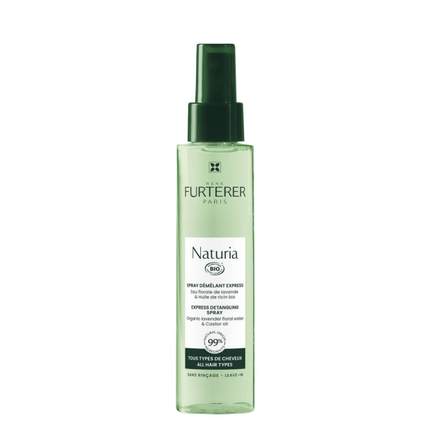 René Furterer Naturia Spray Desembaraçador Express é uma bruma bifásica ultraleve, envolvida numa fragrância floral, com 99% de ingredientes de origem natural.