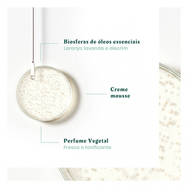 - Biosferas com óleos essenciais de laranja, lavanda e alecrim para uma experiência sensorial única durante a utilização