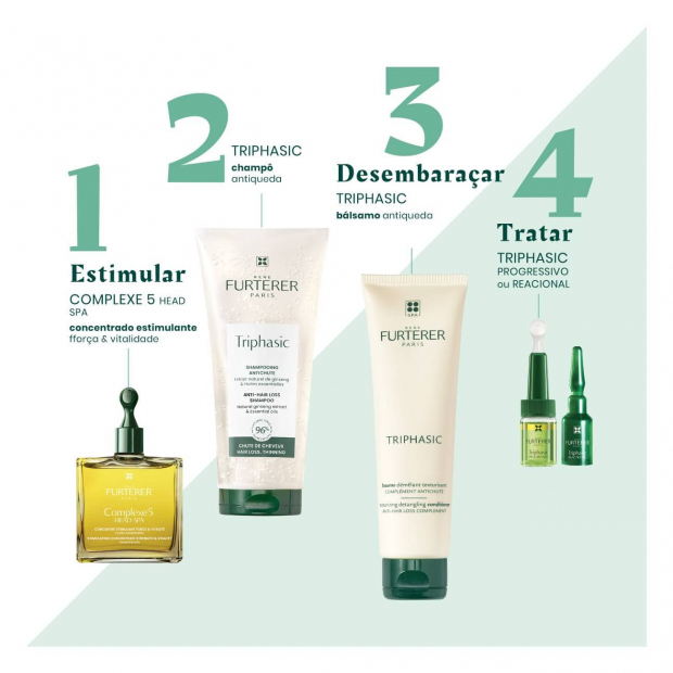 Deixa o teu cabelo mais forte e sem queda com o René Furterer Triphasic Shampoo.