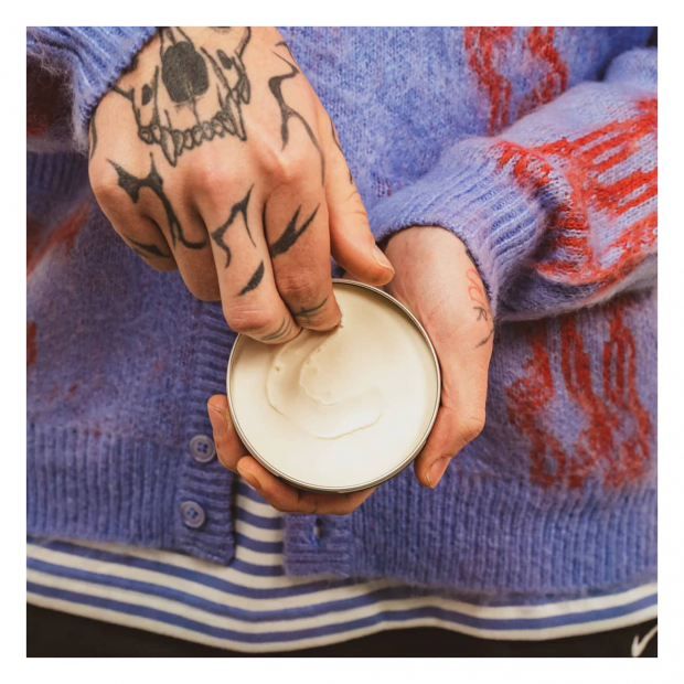Retira uma pequena quantidade de Reuzel Clay Matte Pomade da lata, aquece com as mãos e aplica no cabelo seco ou ligeiramente húmido.