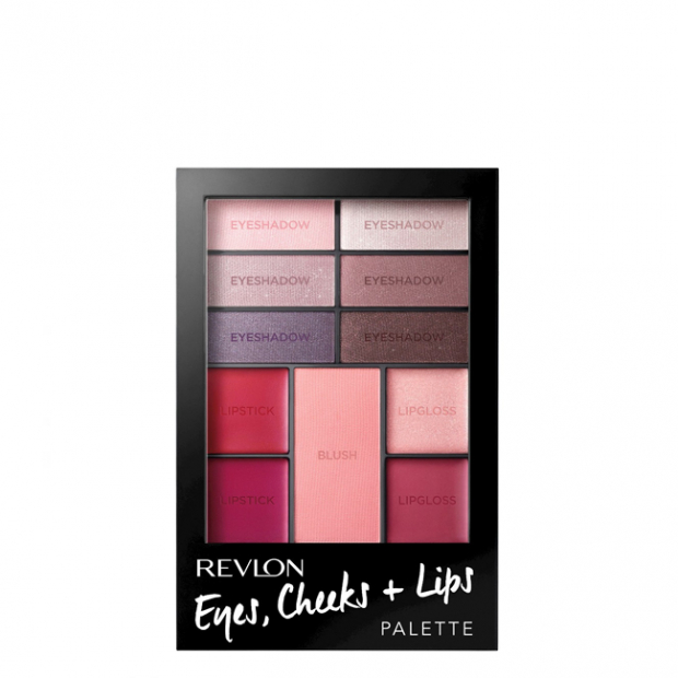 Revlon Eyes, Cheeks + Lips Paleta é uma paleta versátil, que combina tons de blush, sombras e batom, para um look original.