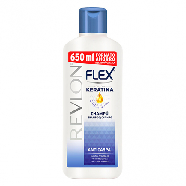 Revlon Flex Shampoo Anticaspa tem uma fórmula que combina piritionato de zinco, queratina hidrolisada e extrato de bardana, para uma ação anticaspa, fortificante, seborreguladora, nutritiva, suavizante, revitalizante e protetora.