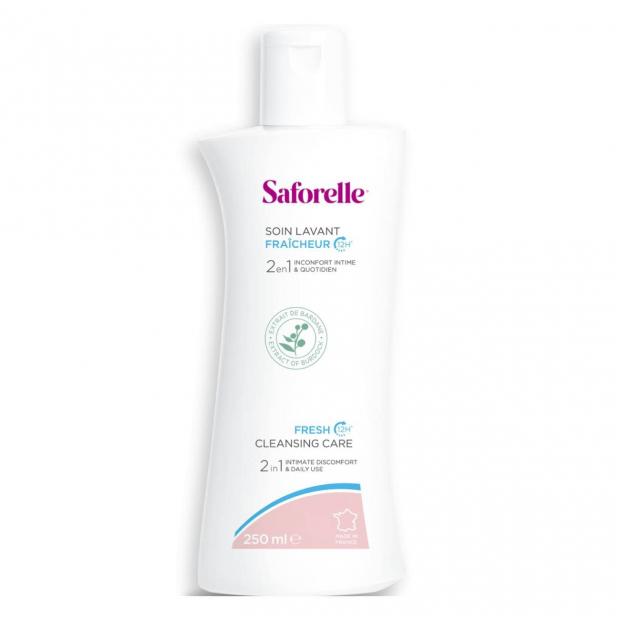 Saforelle Solução de Lavagem Refrescante tem uma textura leve e uma fórmula de elevada tolerância.