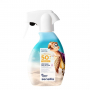 Loção protetora em spray para a pele delicada das crianças.