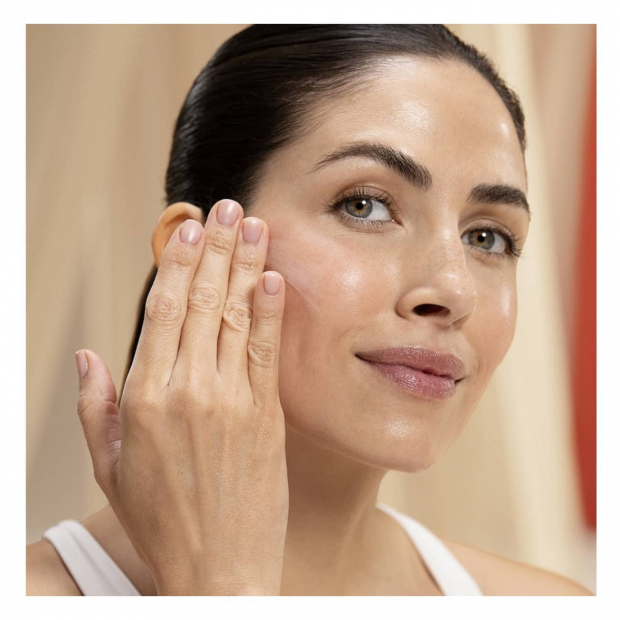 Este creme tem uma textura leve que hidrata prolongadamente, reduz as rugas, estimula a produção de colagénio e ainda acalma a vermelhidão.