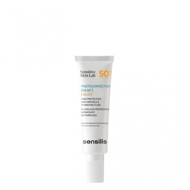 Sensilis Photocorrection [HA 50+] Fluido SPF50+ Cor tem uma textura leve, de rápida absroção e confere um acabamento natural.