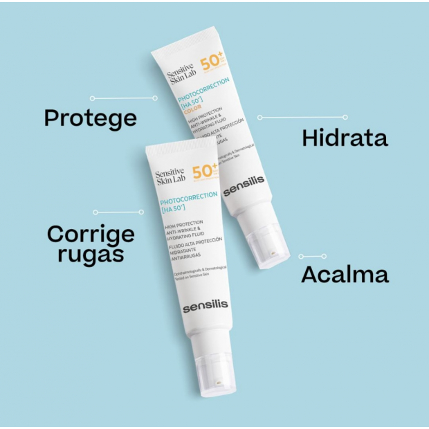 Aplica Sensilis Photocorrection [HA 50+] Fluido diariamente no rosto limpo e reaplica sempre que necessário.