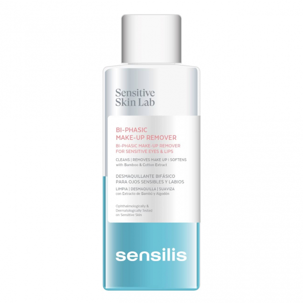 Agita bem antes de usar. Aplica Sensilis Bi-Phasic Make-Up Remover, de manhã e à noite, na pele do contorno dos olhos e lábios, com a ajuda de um disco de algodão. Reaplica até o algodão sair limpo.