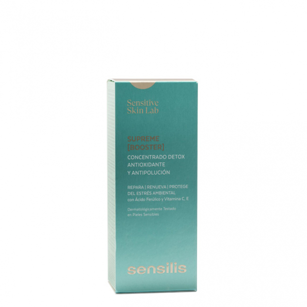 Sensilis Supreme Booster FeCE Sérum tem uma textura fluida, fresca e de rápida absorção, com uma combinação poderosa de antioxidantes: ácido ferúlico (0.5%), vitamina C (5%) e vitamina E (0.5%) para um efeito hidratante, antioxidante, antipoluição, protetor e regenerador. Associa Moringa oleifera para reforçar o efeito antipoluição, ginkgo biloba para uma ação calmante e óleo de argão que acelera a renovação da pele.