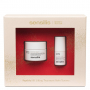 Este conjunto contém um bálsamo hidratante para pele seca, que hidrata, reduz as rugas e acalma a vermelhidão e um creme de olhos com efeito tensor, que reduz as rugas no contorno dos olhos.