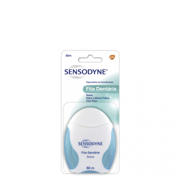 Sensodyne Fita Dentária Suave é um fio dental, feito em fibra suave e macia, revestido com uma base de cera e flúor de sódio (0,1% p/p, 450 ppm de Flúor).