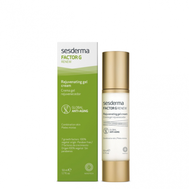 Sesderma Factor G Renew Creme Gel é um creme concentrado, que ajuda a combater os principais sinais de envelhecimento. Com propriedades de crescimento e células mãe vegetais que estimula a regeneração celular, reduz as rugas e recupera a densidade da pele. Regenera, hidrata e rejuvenesce. Estimula a produção natural do colagénio e elastina. Protege contra os danos causados pelos radicais livres. Ideal para pele madura, sensível e reativa.
