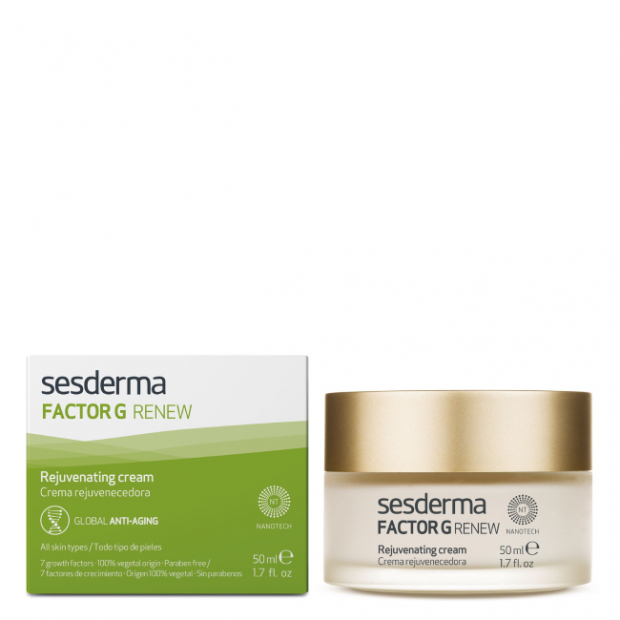 Sesderma Factor G Renew Creme resulta da combinação de ingredientes ativos: vitamina E e extrato de centelha asiática para uma ação hidratante, reparadora, regeradoras e anti-inflamatória para uma pele mais jovem e cheia de vitalidade.