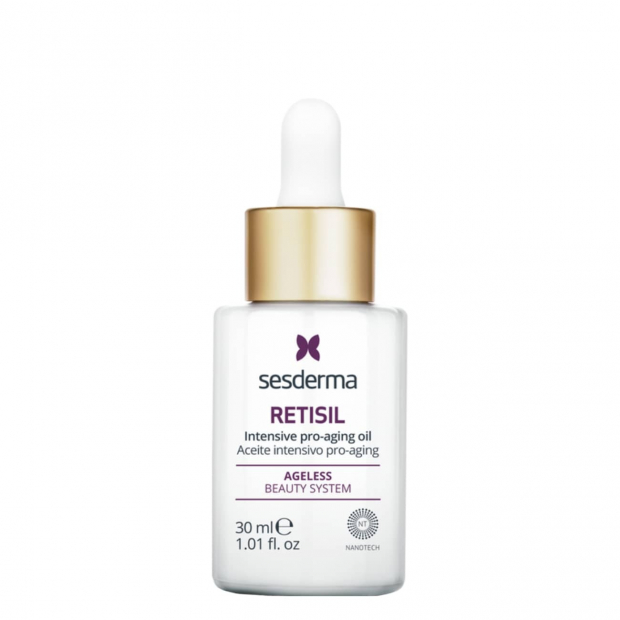 Sesderma Retisil Óleo Intensivo Pro-Aging é formulado com nanotecnologia para uma difusão dos ativos segura e eficaz.