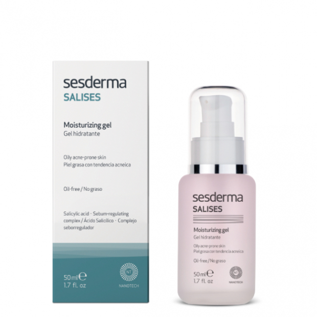 Sesderma Salises Gel tem uma textura em gel fundente, com ácido salicílico e aloé vera, para uma ação hidratante, seborreguladora, esfoliante, purificante, anti-acne e matificante.