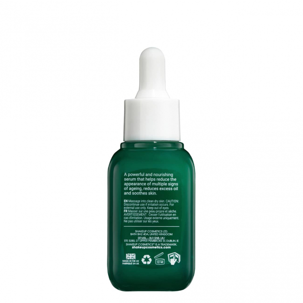 ShakeUp Face 4Ward Sérum Rejuvenescedor tem uma fórmula vegan com uma estrutura molecular mais pequena para penetrar mais profundamente na pele.