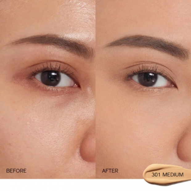 Sem efeito máscara, adapta-se perfeitamente ao tipo de pele, tom e textura, proporcionando à pele uma cobertura média a elevada, com um acabamento natural. Disfarça todo tipo de imperfeições, como olheiras, manchas e vermelhidões. Com um aplicador inovador, permite uma aplicação fácil e precisa, para um efeito natural. De longa duração, não se altera com o movimento do rosto, resiste ao suor e à oleosidade da pele. Mantém intacta até 24h. Com acabamento mate, regula o excesso de brilhos até 8h. Não bloqueia os poros. Previne os danos causados pelas agressões externas diárias. Melhora o tom e textura, enquanto ilumina a tez.