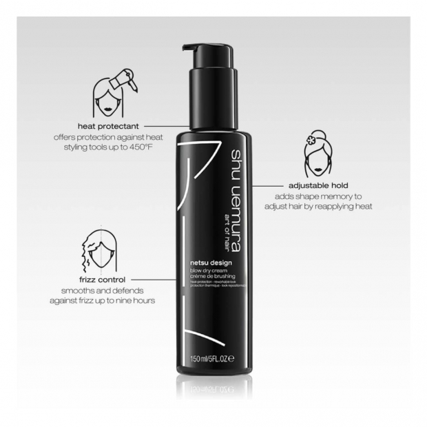 Shu Uemura Style Netsu Design Blow Dry Creme Protetor Térmico tem uma textura cremosa leve e uma fórmula minimalista.