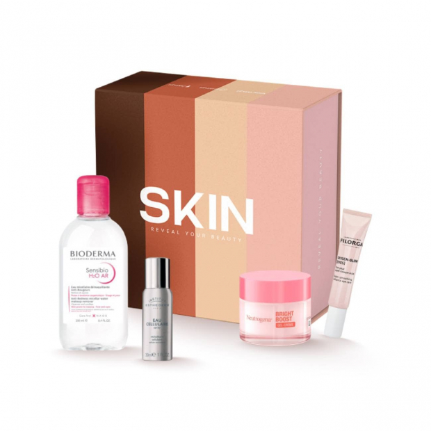 Esta skinbox contém uma água micelar suave que remove a maquilhagem e imperfeições, uma bruma que hidrata, refresca e previne o envelhecimento, um creme de olhos que revitaliza e ilumina intensamente a pele e um creme hidratante que esfolia suavemente e ilumina a pele.
