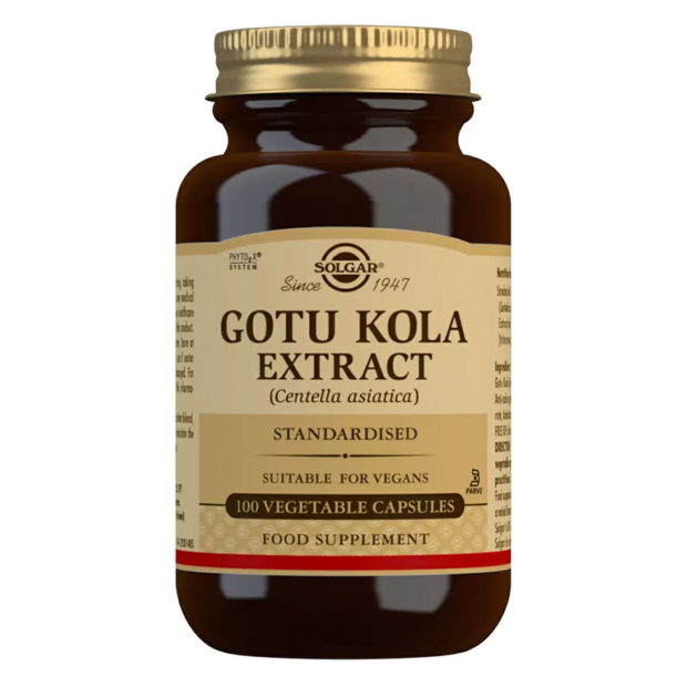 Solgar Gotu Kola Cápsulas é um suplemento alimentar, que ajuda a melhorar o metabolismo, combater a insuficiência venosa e a celulite. Melhora a estrutura do tecido conjuntivo. Diminui a formação e aparência da celulite. Fortalece as as células das paredes dos vasos sanguíneos. Pode ser usado como coadjuvante na insuficiência venosa, em casos de úlcera da perna e contra a celulite.