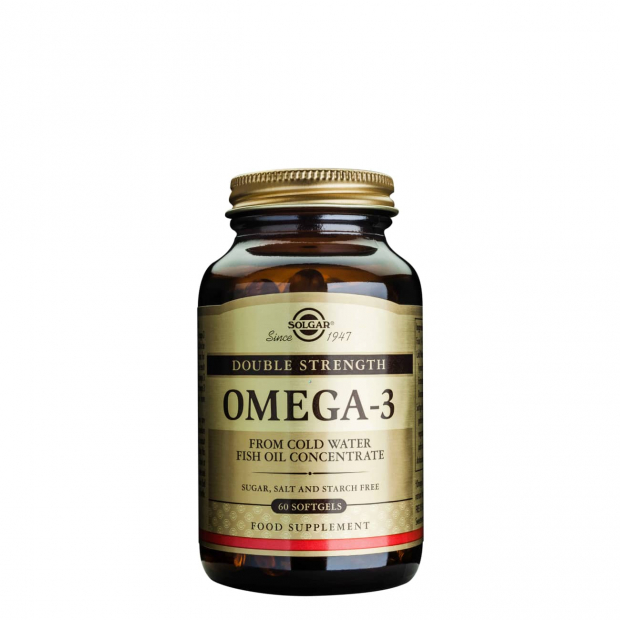 Solgar Ómega 3 Dupla Potência é um suplemento alimentar que contém ácidos gordos essenciais que beneficiam a saúde em vários aspetos. Previne e trata as doenças cardiovasculares, reduzindo o colesterol e os triglicéridos. Melhora a hipertensão arterial ligeira. Diminui a frequência e a intensidade para pessoas com enxaqueca frequente. Ajuda a normalizar os níveis de humor, diminuindo a ansiedade e os ataques de pânico.