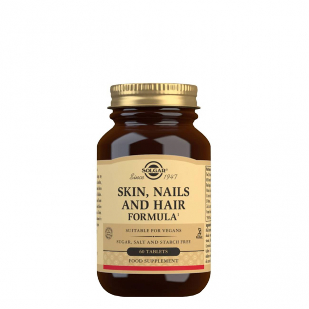 Solgar Skin Nails and Hair é um suplemento alimentar, que ajuda a fortificar e melhorar a saúde do cabelo e das unhas. Promove a resistência capilar e das unhas. Contribui para a manutenção do estado do cabelo, das unhas e da pele. Melhora a elasticidade cutânea. Ideal para cabelos e unhas fragilizadas. Sem conservantes, sem aromatizantes e sem corantes artificiais.
