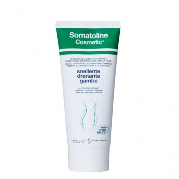 Somatoline Creme Redutor Drenante Pernas tem uma textura cremosa fresca, com complexo exclusivo Crio Dren® (extrato de menta e mentol, cafeína, escina e extrato de ruscus), para uma ação redutora, remodelante, drenante, refrescante, estimulante, alisante e suavizante.