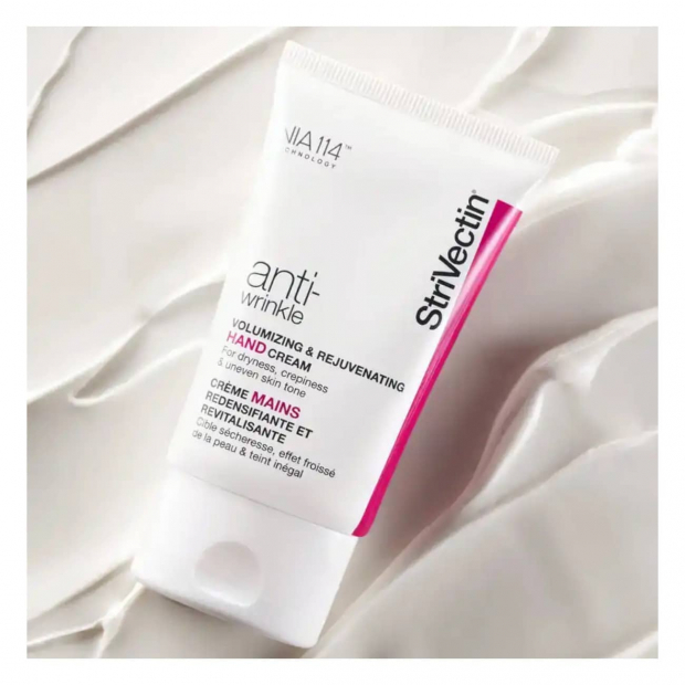 StriVectin Anti-wrinkle Volumizing and Rejuvenating Hand Cream tem uma textura cremosa, uma fragrância agradável e uma fórmula clinicamente testada rica em ingredientes naturais.