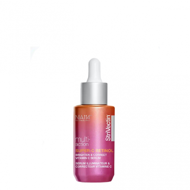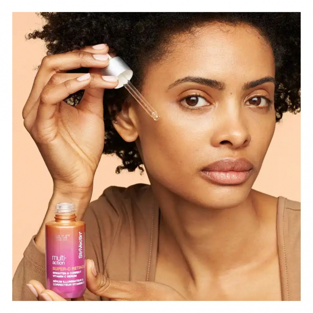 Strivectin Multi-Action Super-C Retinol Sérum Iluminador e Corretor tem uma textura leve não pegajosa e uma fórmula revolucionária que combina dois ingredientes poderosos e ainda ingredientes de origem natural.