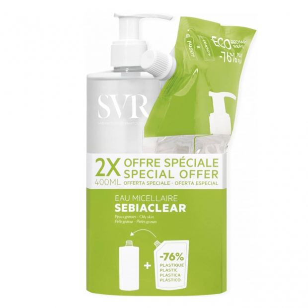 SVR Sebiaclear Pack Água Micelar Purificante 400ml + Recarga 400ml