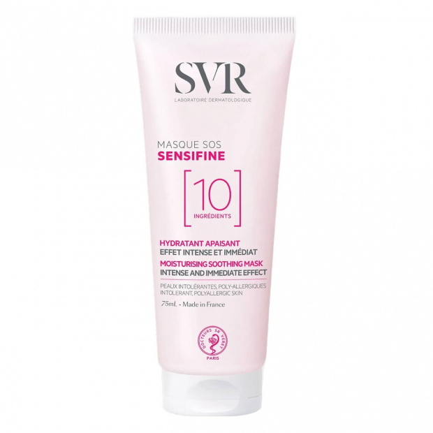 SVR Sensifine Máscara SOS tem uma fórmula minimalista com apenas 10 ingredientes e 96% de ingredientes naturais.