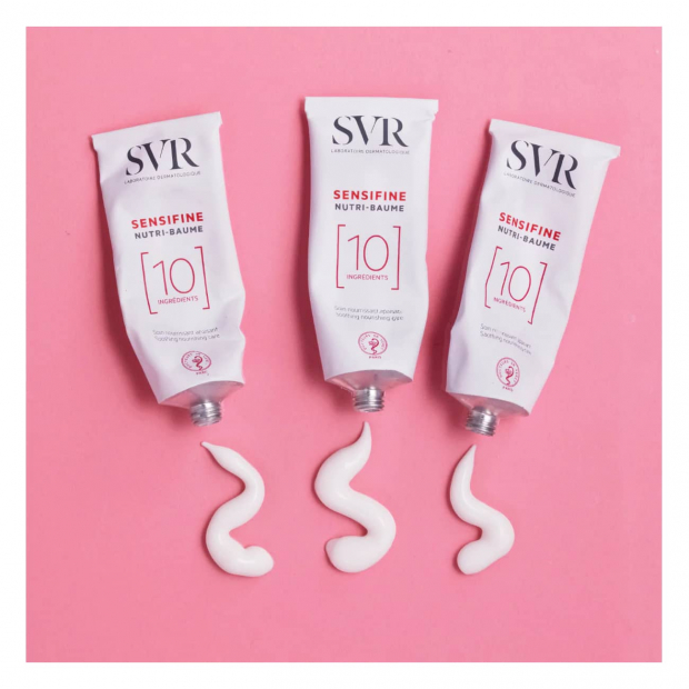 SVR Sensifine Nutri-Baume [10] tem uma fórmula minimalista com apenas 10 ingredientes e 95% de origem natural, escolhidos cuidadosamente para máxima tolerância.