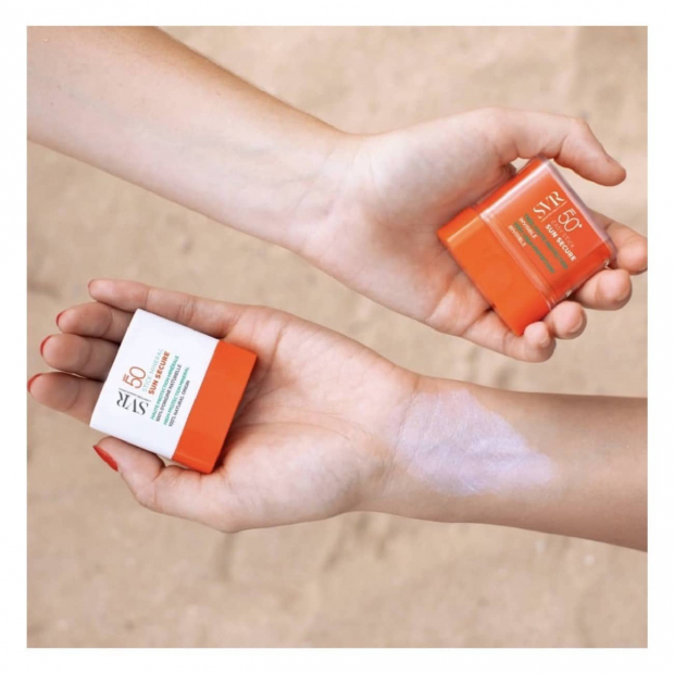 SVR Sun Secure SPF50+ Easy Stick tem uma textura cremosa, um acabamento transparente e uma fórmula de elevada tolerância.