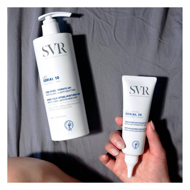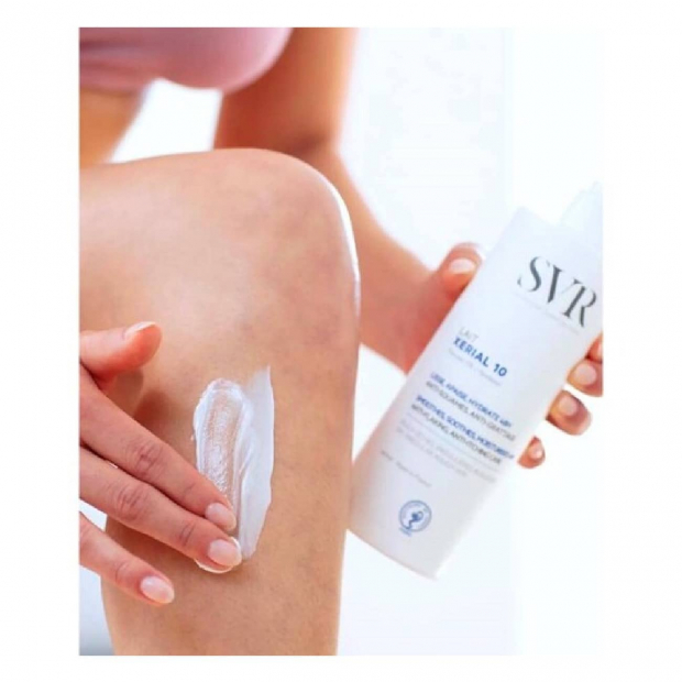 Para eliminar o desconforto, aspereza e descamação da pele seca, o leite corporal SVR Xerial 10 é o teu melhor aliado!