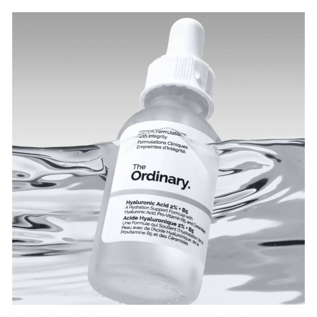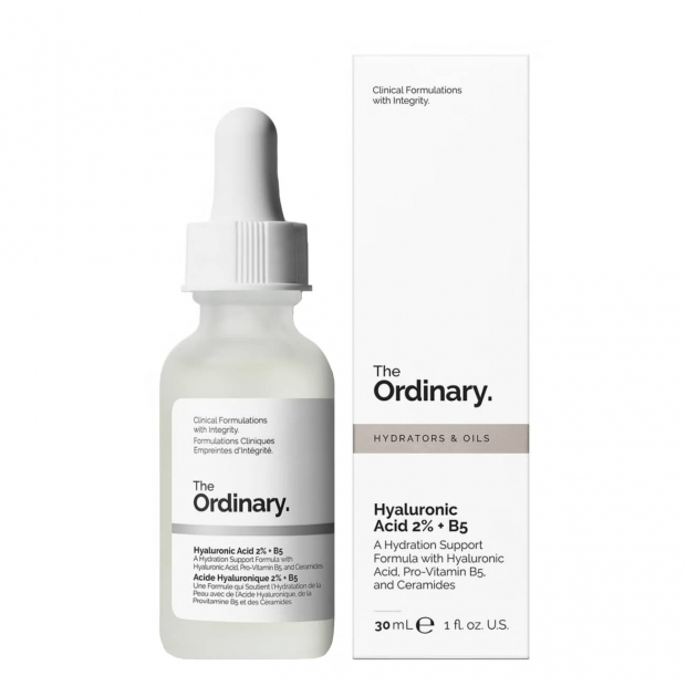 Aplica The Ordinary Hyaluronic Acid 2% + B5 de manhã e à noite na pele do rosto limpa, antes dos óleos e cremes hidratantes.