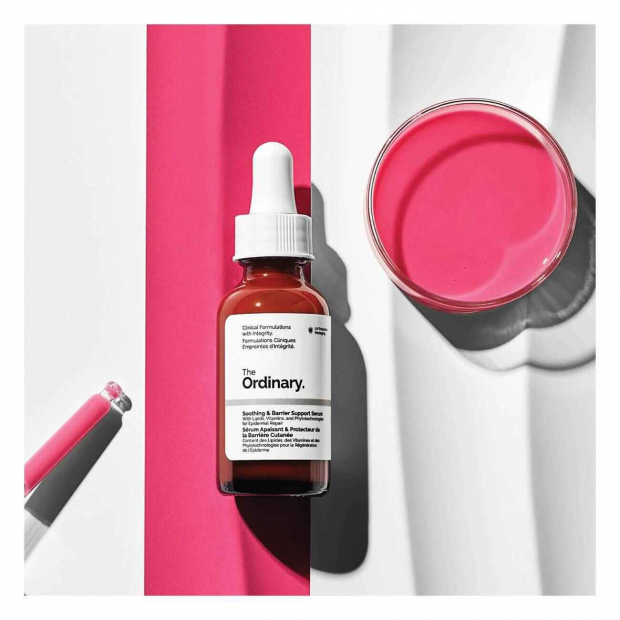The Ordinary Soothing & Barrier Support Serum tem uma fórmula simples, com eficácia comprovada.