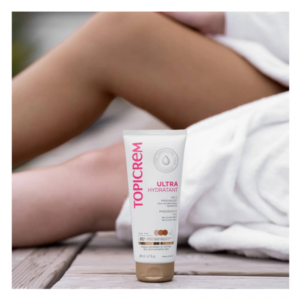 Topicrem Ultra-Hydratant Bronzeado Progressivo tem uma textura leve e fresca e uma fórmula de elevada tolerância com 89% de ingredientes de origem natural.