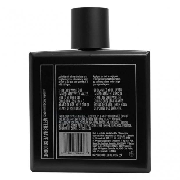 Uppercut Deluxe Aftershave Colónia Pós Barbear tem uma fragrância original com notas frescas cítricas e um baixo teor de álcool que contém: