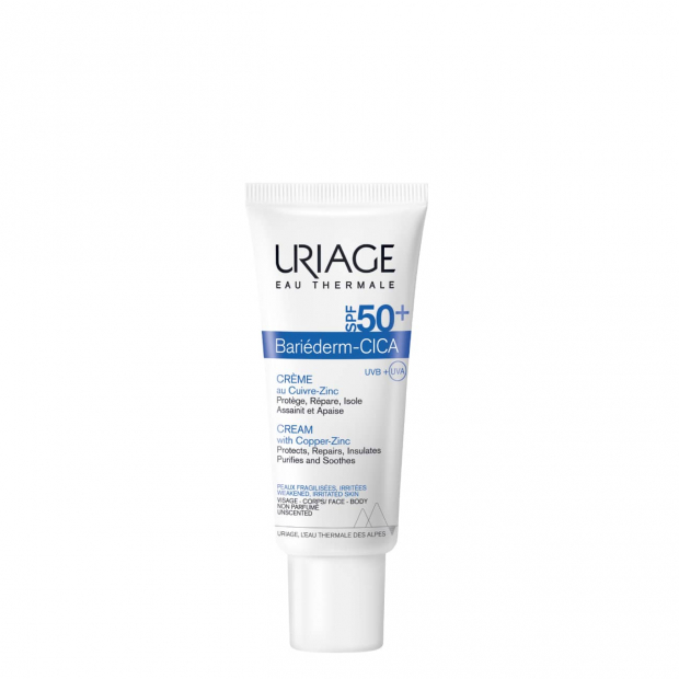 Uriage Bariederm Cica SPF50+ Creme é um creme reparador e cicatrizante, com proteção solar, ideal para as pequenas lesões e irritações do dia-a-dia de toda a família.