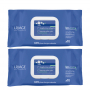 Pack com 2 embalagens de toalhitas de limpeza extra suave para a pele delicada dos recém-nascidos e bebés.