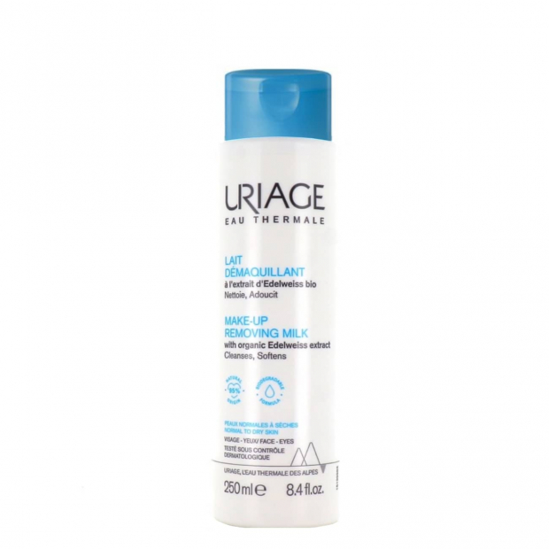 Uriage Leite Desmaquilhante tem uma textura em leite cremoso, numa fórmula que contém 95% de ingredientes de origem natural.